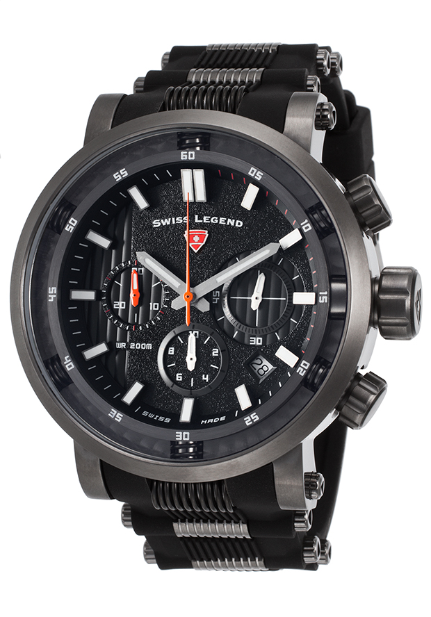 Silver-Tone and Luminous Hour, Minute and Subdials. Orange Second. Orange and Luminous Subdial. |